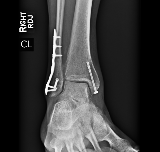 "In September of 2021 I suffered a trimalleolar fracture of my right ankle in a freak accident. That was on a Saturday, and early Monday morning I was seen by Dr. Harrod, who said that surgical intervention would be required. He operated on my ankle that Thursday, inserting two metal plates and several pins. For two months I could not put any weight on that foot, and for several weeks after that I was in a walking boot. I began regular physical therapy in January of 2022, and now, in late May, I walk several miles a day and keep up an exercise and stretching routine. I still experience some soreness and swelling in the ankle, but I look forward to spending this summer teaching in Vermont and hiking, swimming, and riding my bike."